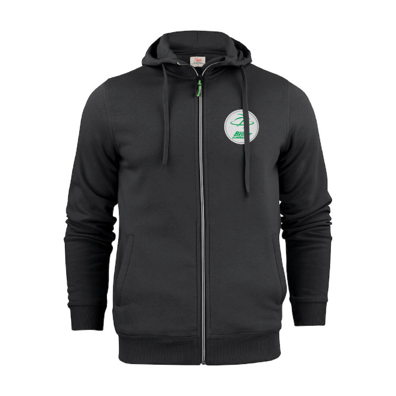 Veste à capuche fermeture éclair centrale devant dans une couleur contrastée. Poches passepoilées. Cordon au niveau de la capuche. Capuche doublée en jersey simple teint pour saccorder avec lextérieur. ·Matière : 60% coton, 40% polyester, brossé intérieur, 280 g/m²(120 gris chiné : 85% coton, 15% viscose). Certification : OekoTex.