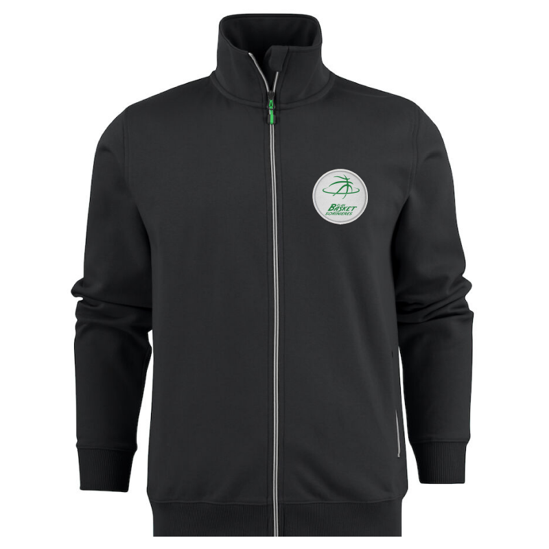 Veste zippée sans capuche. Poches cachées. Col montant. 60% coton organique, 40% polyester recyclé -
